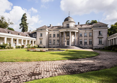 La salle de fête, située dans l’aile droite du château, peut accueillir jusqu’à 100 personnes assises, et jusqu’au double en formule cocktail.